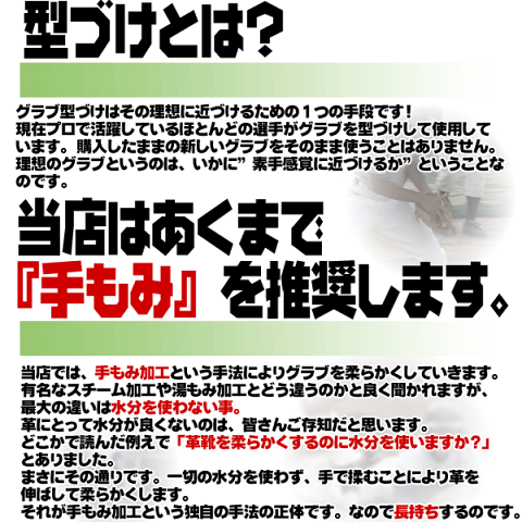 ■手もみ加工できるグラブは、当店でお買い上げいただいた新品のグラブに限ります。
